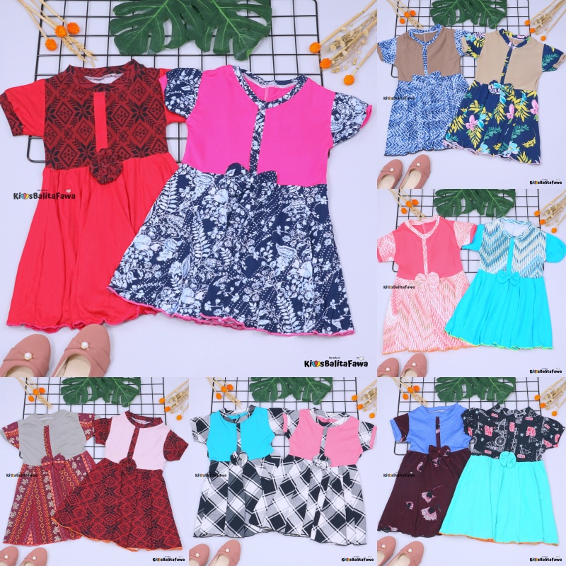 Harga Dress ABC uk 1-2 Tahun / Balita Anak Perempuan Murah Baju Dres Batik Adem Pita Grosir Lengan Kaos