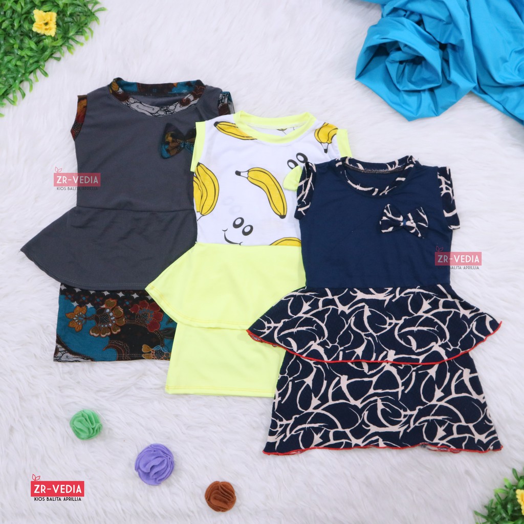 Harga Dress Viona uk 2-3 Tahun / Dress Lengan Kensi Murah Anak Perempuan Baju Pesta Batik Blouse
